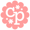 A cute cartoon drawing of Christina with multicolored hair holding a drawing of flowers, standing next to a colorful stand with green bushes. The logo reads 'Christina Petrole' in pink and blue letters, surrounded by flowers and snowflakes.